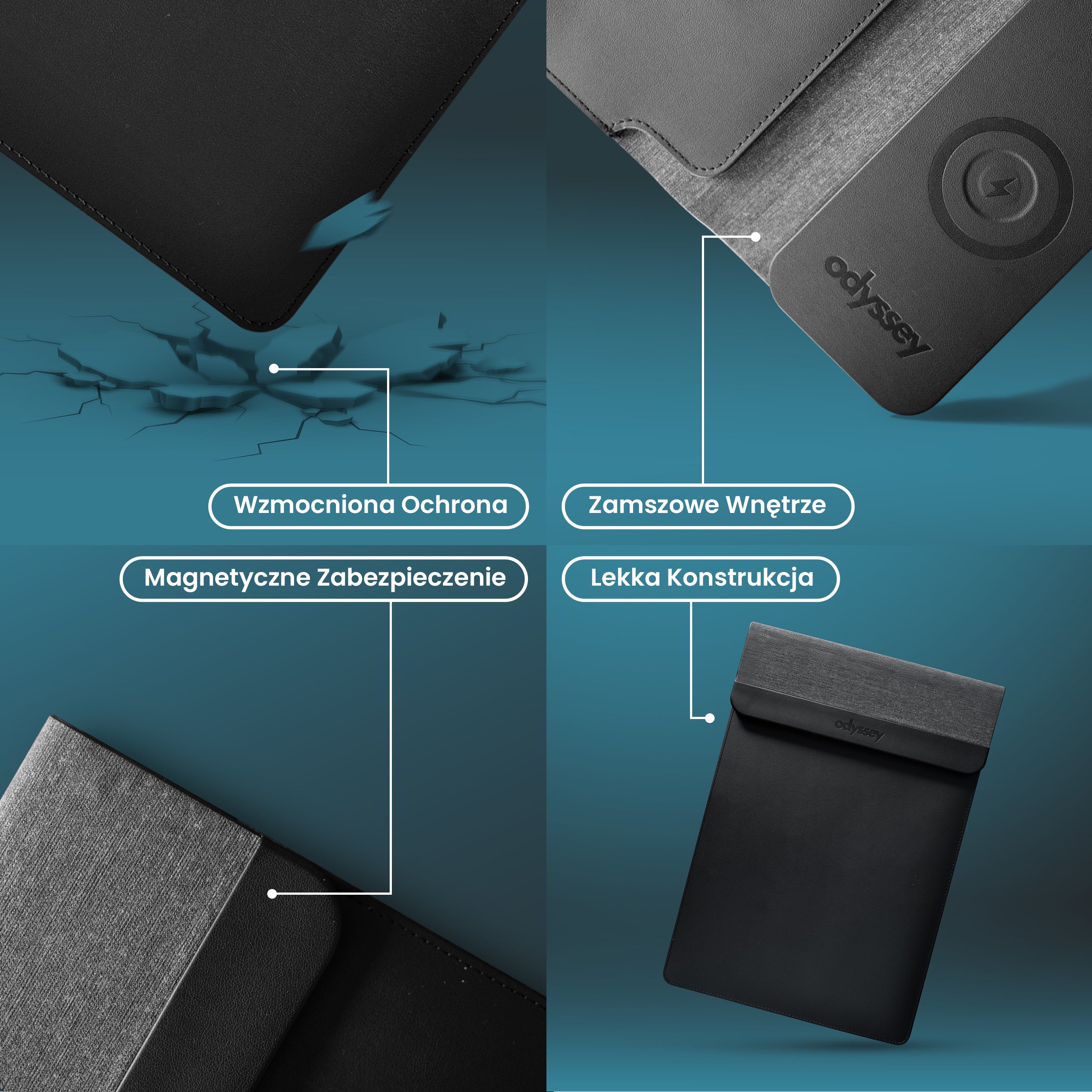 Odyssey™ - PowerCase redefiniuje standardy etui na laptopa. Dzięki wzmocnionej ochronie i magnetycznemu zabezpieczeniu, Twój sprzęt jest zawsze bezpieczny. Zamszowe wnętrze chroni powierzchnię urządzenia przed zarysowaniami, a lekka konstrukcja sprawia, że jest idealnym towarzyszem zarówno w pracy, jak i w podróży. Elegancja i niezawodność w jednym etui – stworzonym z myślą o najbardziej wymagających użytkownikach.